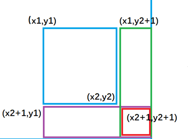 ;让整个数组中红色矩形面积的元素再加上,红色内的相当于被减了两次,再加上一次,才能使其恢复。